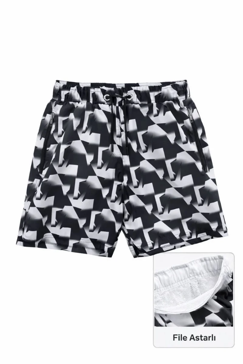 Kadın Deniz Şortu Fermuarlı Cepli File Astarlı Hızlı Kuruyan Premium - Siyah