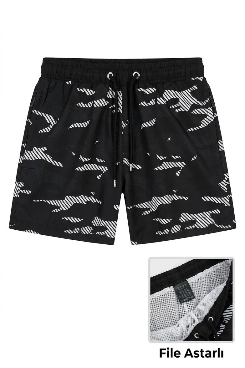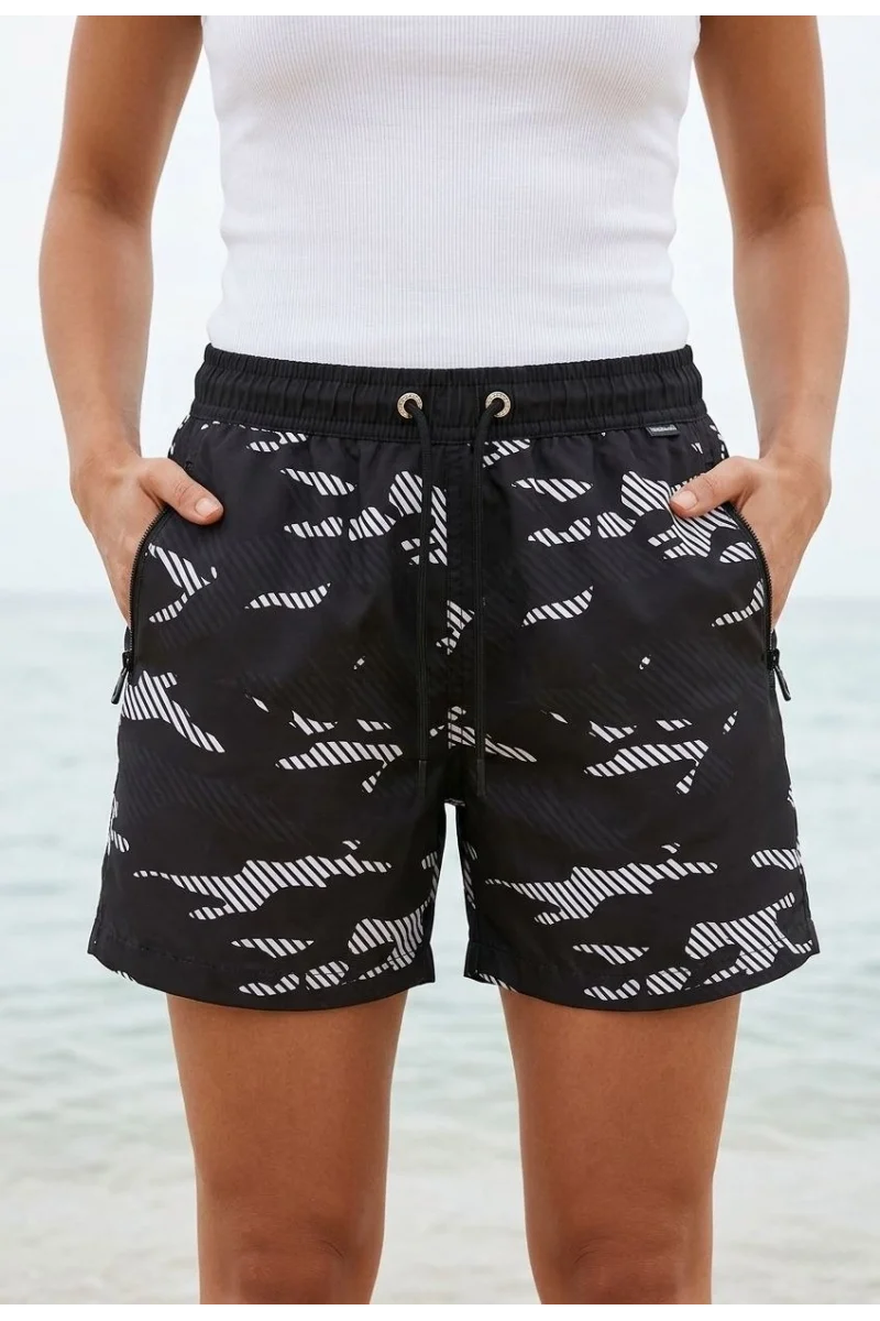 Kadın Deniz Şortu Fermuarlı Cepli File Astarlı Hızlı Kuruyan Premium - Siyah