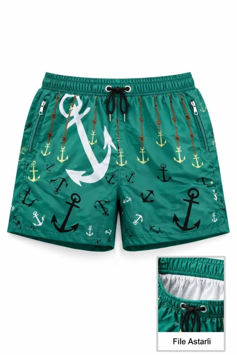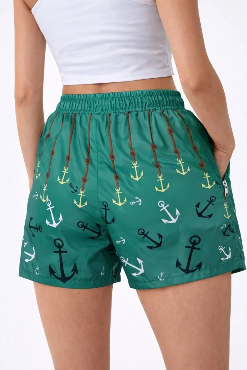 Kadın Deniz Şortu Fermuarlı Cepli File Astarlı Hızlı Kuruyan Premium - Su Yeşili