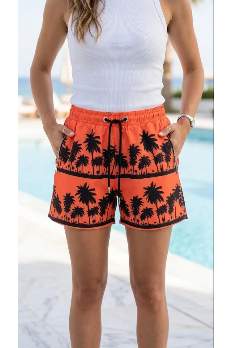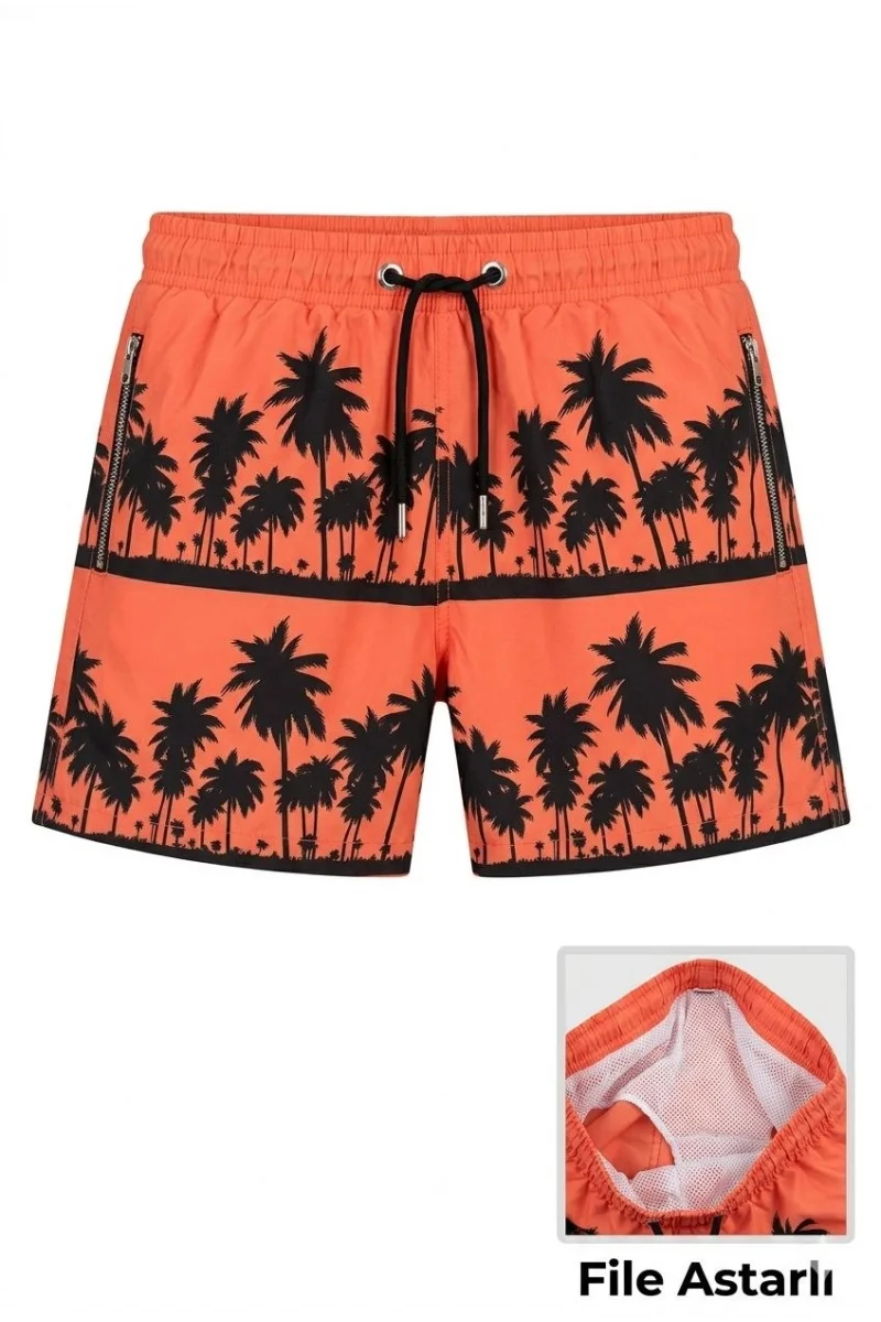 Kadın Deniz Şortu Fermuarlı Cepli File Astarlı Hızlı Kuruyan Premium - Turuncu