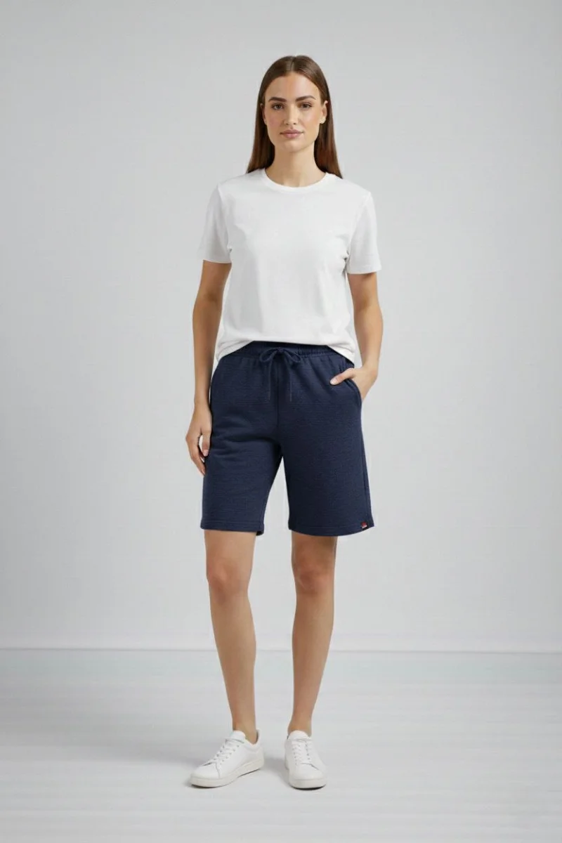 Kadın Dokuma otoban Şort Beli Lastikli Bağcıklı Cepli Kesim Şort - Lacivert