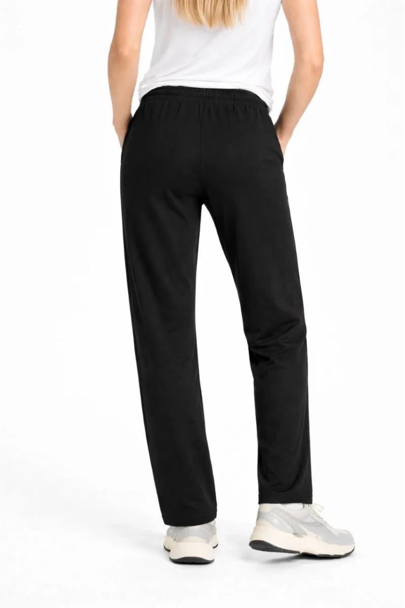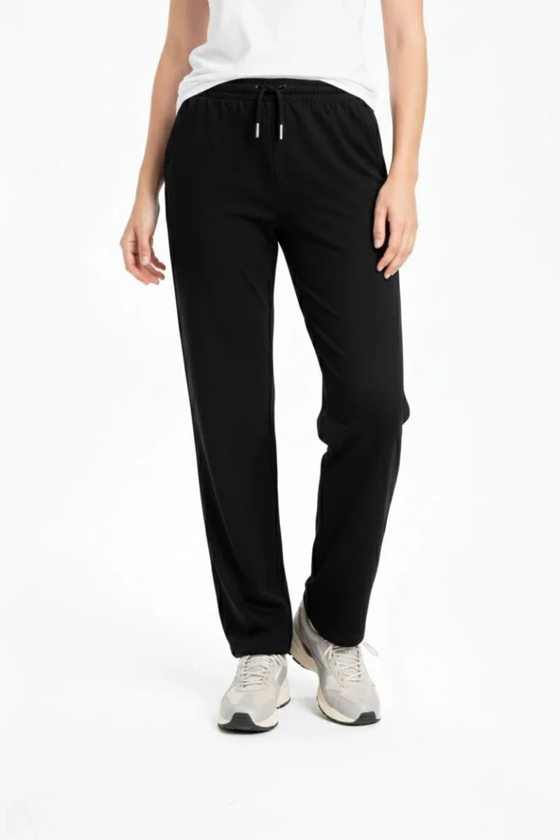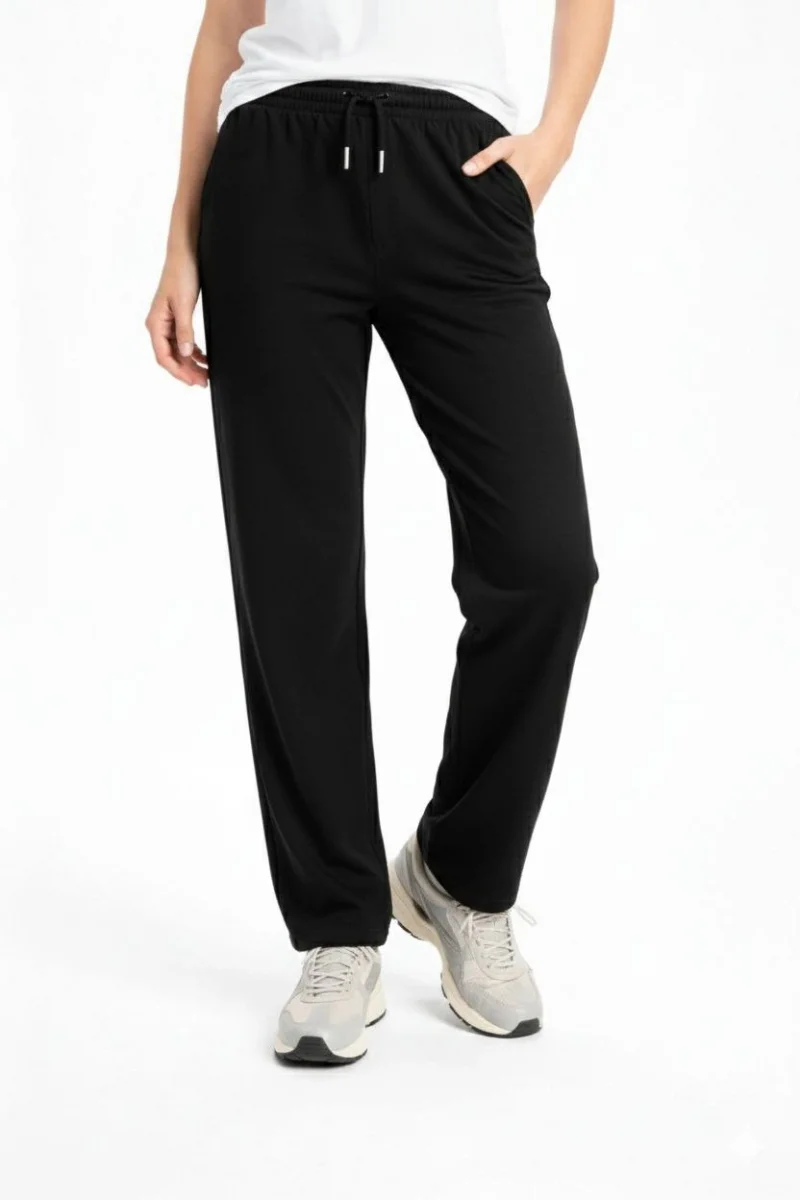 Kadın Düz Paça Beli Lastikli İpli Günlük Spor Eşofman Altı Rahat Fit - Siyah