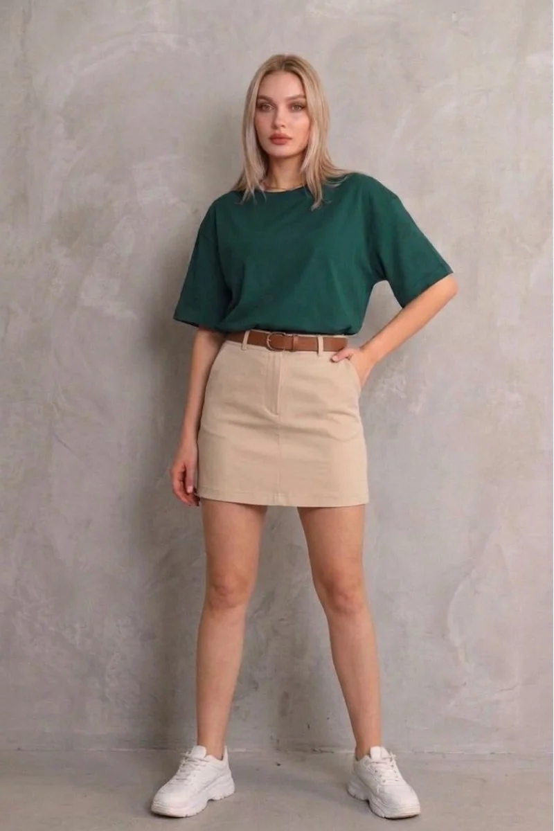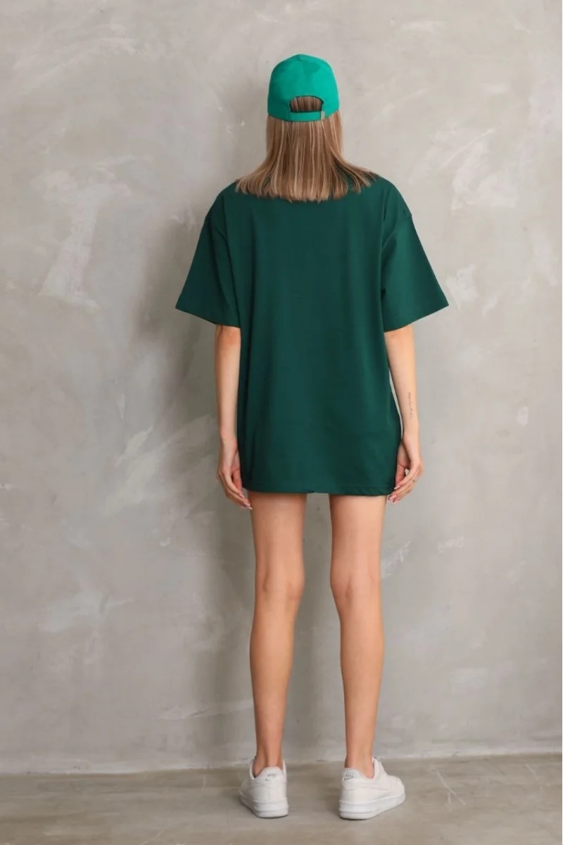 Kadın Regular Fit Tişört Bisiklet Yaka Yazlık Kısa Kol Basıc T-Shirt - Yeşil