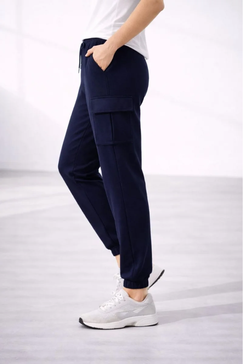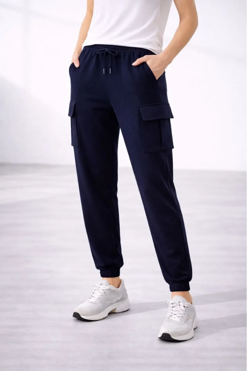 Kadın Jogger Eşofman Altı Rahat Kalıp, Kargo Cepli, Lastikli Paça, Günlük Spor Pantolon - Lacivert