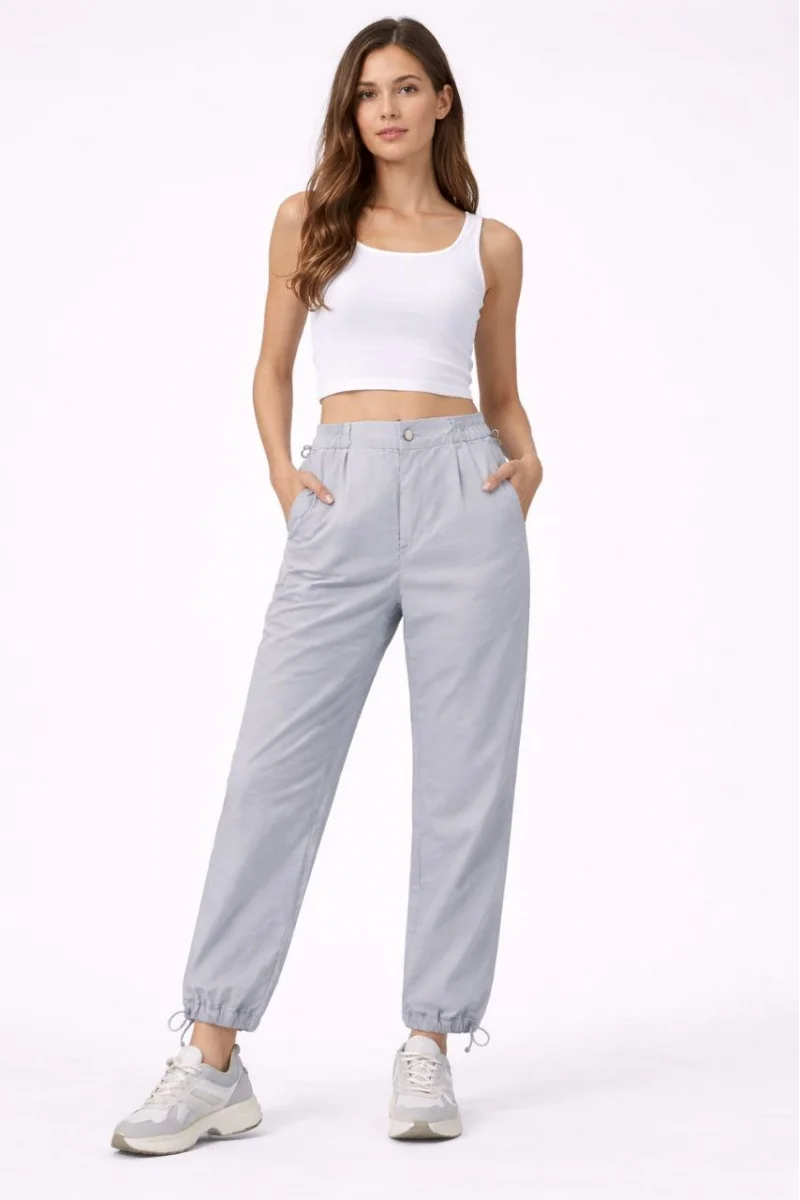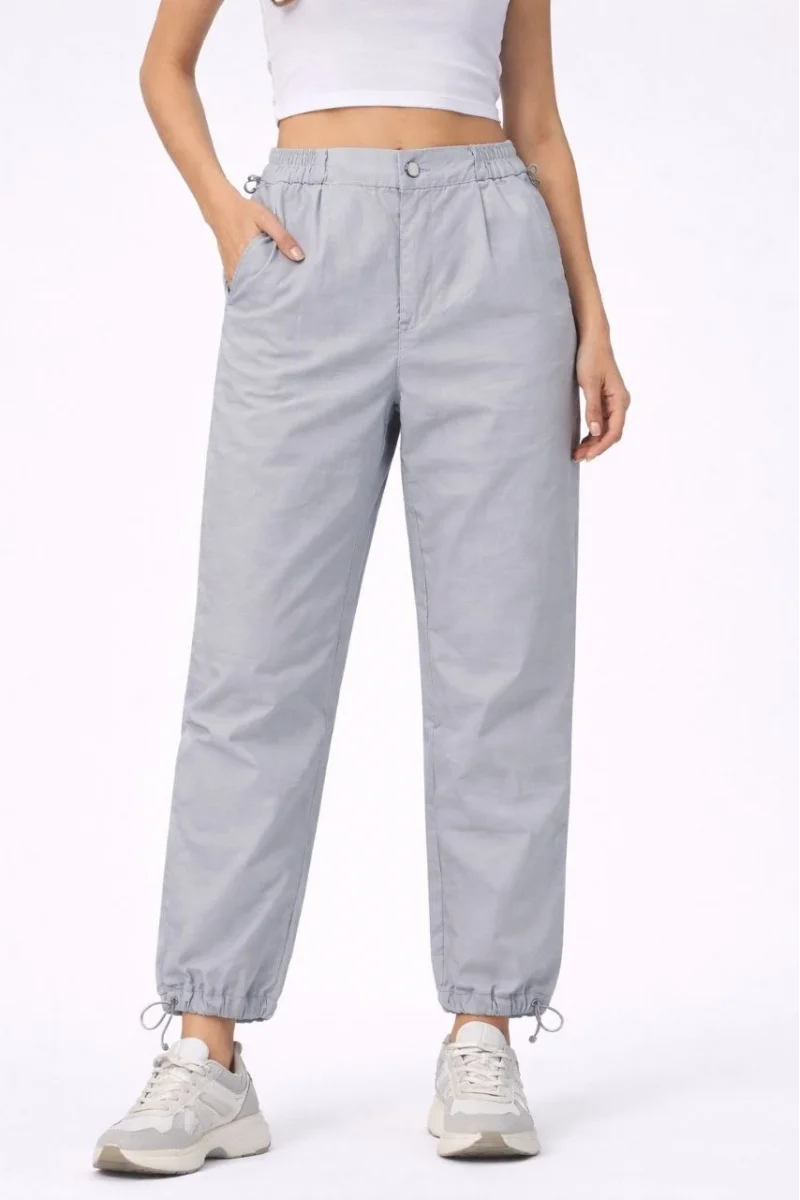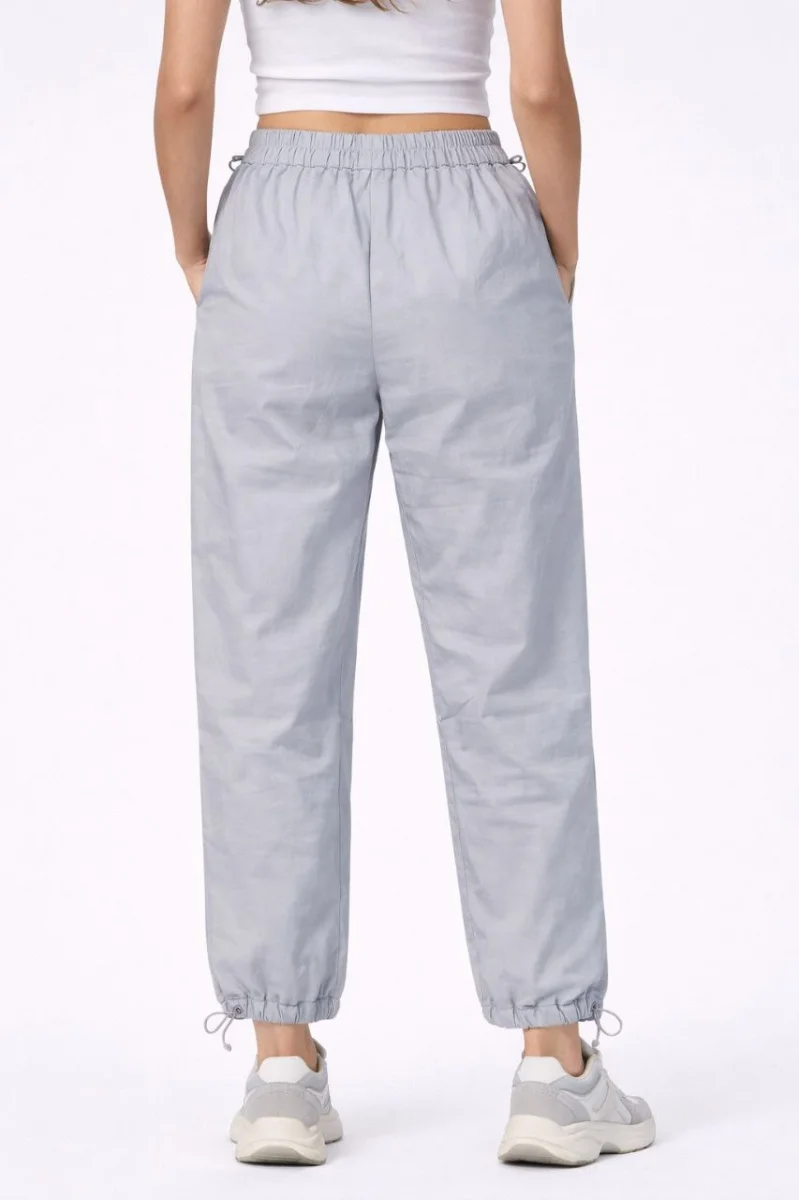 Kadın Paraşüt Kumaş Pantolon Bel ve Paça Ayarlanabilir Lastikli Spor Pantolon - Gri
