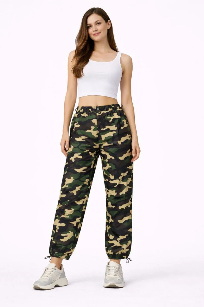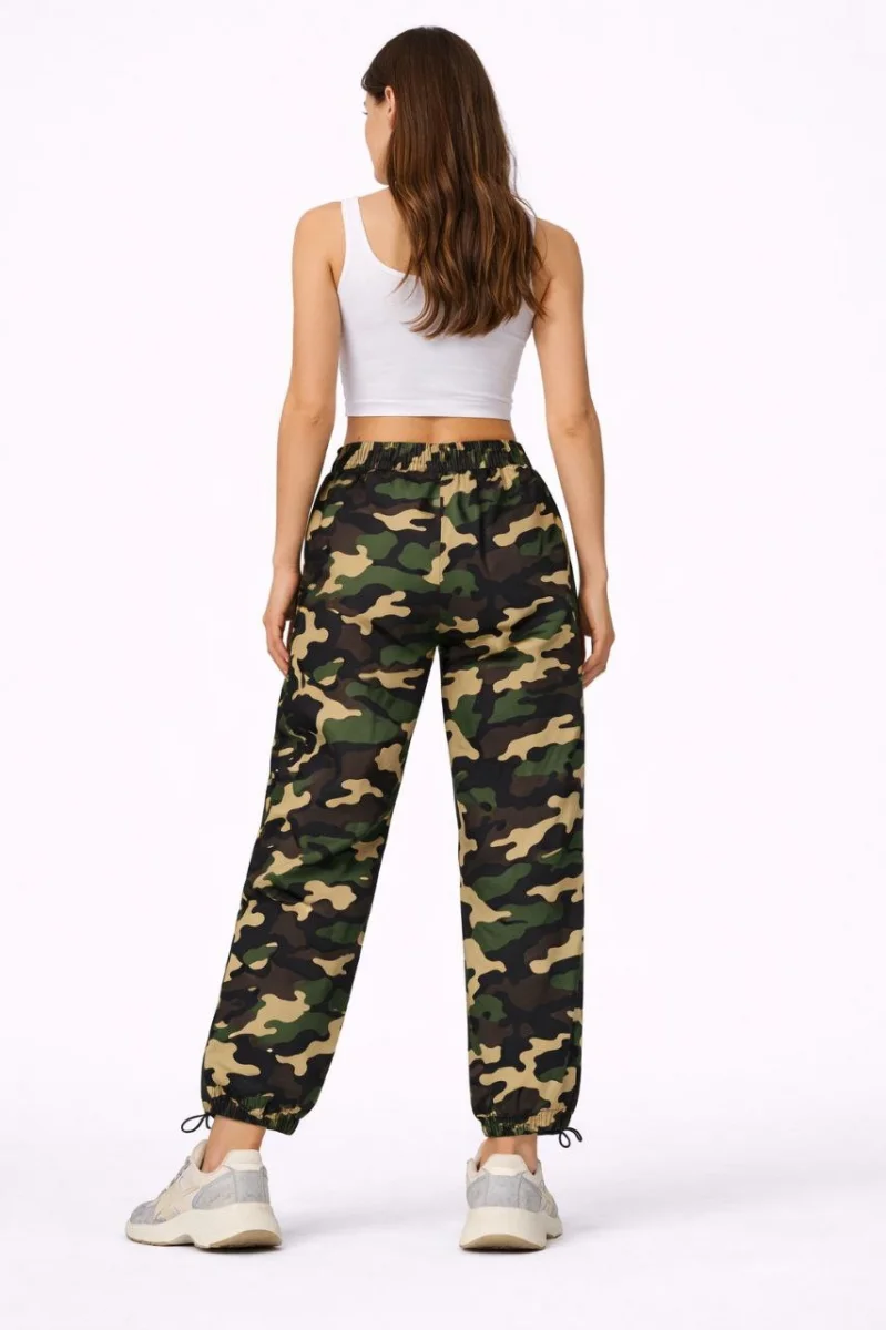Kadın Paraşüt Kumaş Pantolon Bel ve Paça Ayarlanabilir Lastikli Spor Pantolon - Kamuflaj