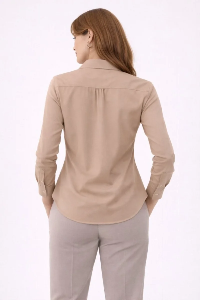 Kadın Uzun Kollu Gömlek Düğmeli Klasik Yaka Günlük ve Ofis Şıklığına uygun - Bej