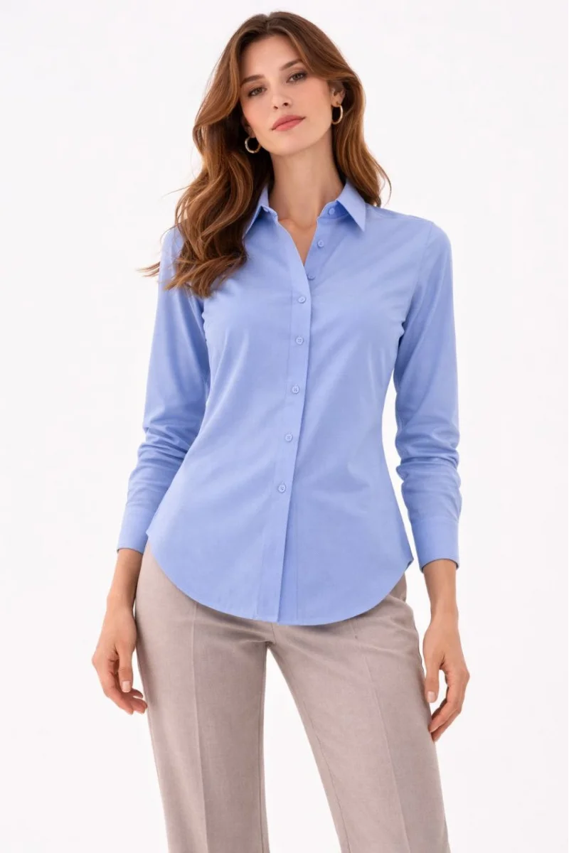 Kadın Uzun Kollu Gömlek Düğmeli Klasik Yaka Günlük ve Ofis Şıklığına uygun - Mavi