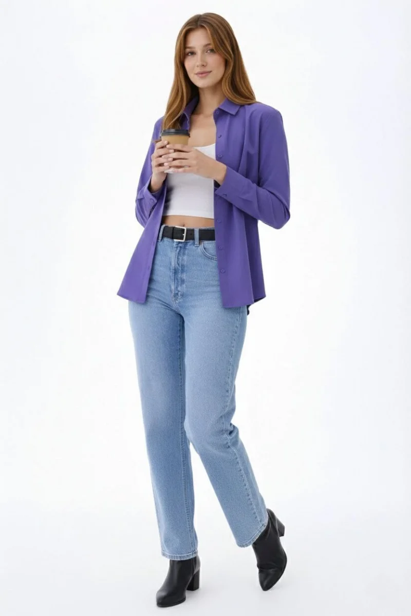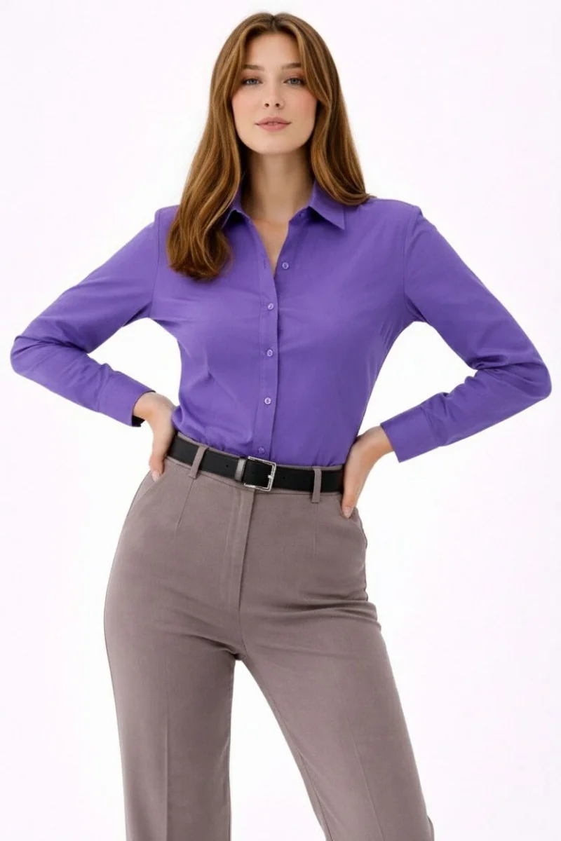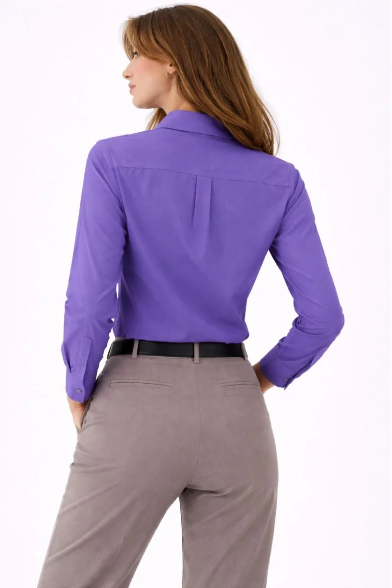 Kadın Uzun Kollu Gömlek Düğmeli Klasik Yaka Günlük ve Ofis Şıklığına uygun - Mor