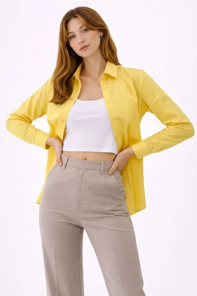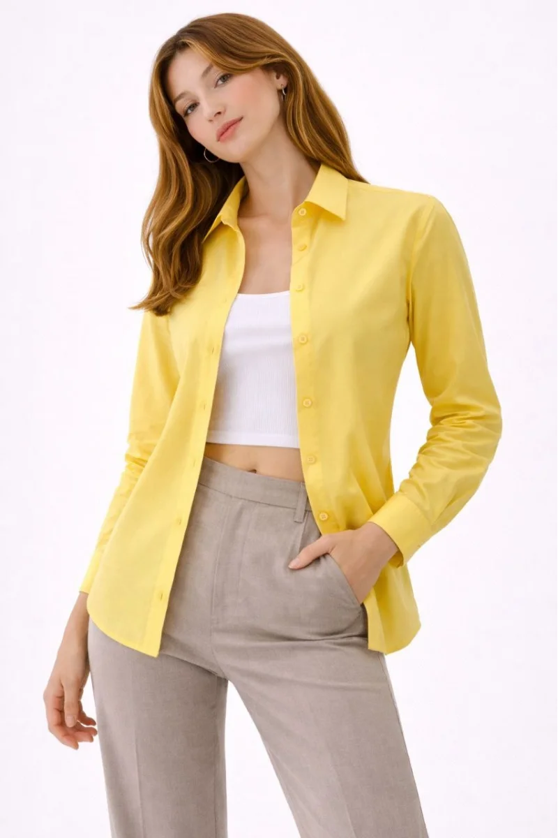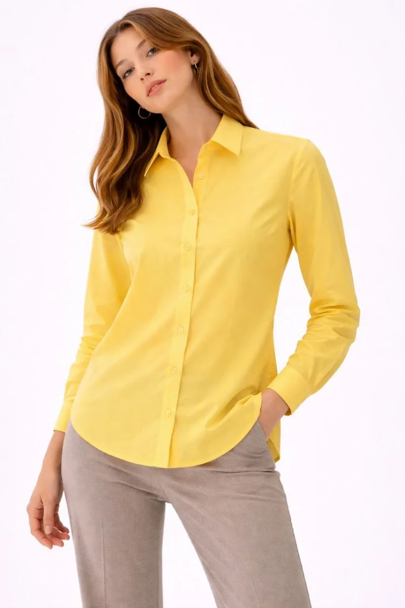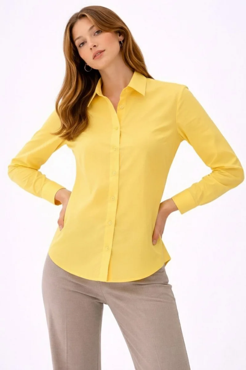 Kadın Uzun Kollu Gömlek Düğmeli Klasik Yaka Günlük ve Ofis Şıklığına uygun - Sarı