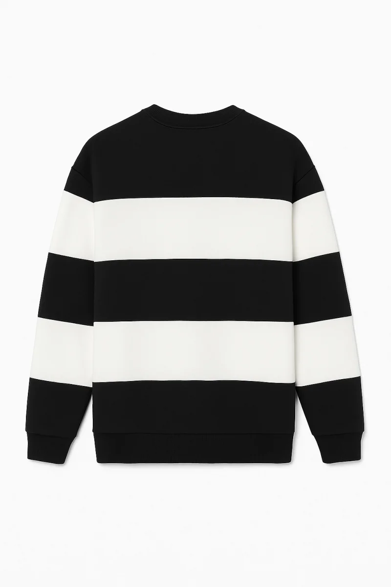 Ön Bisiklet Yaka Parçalı Sweatshirt - Siyah