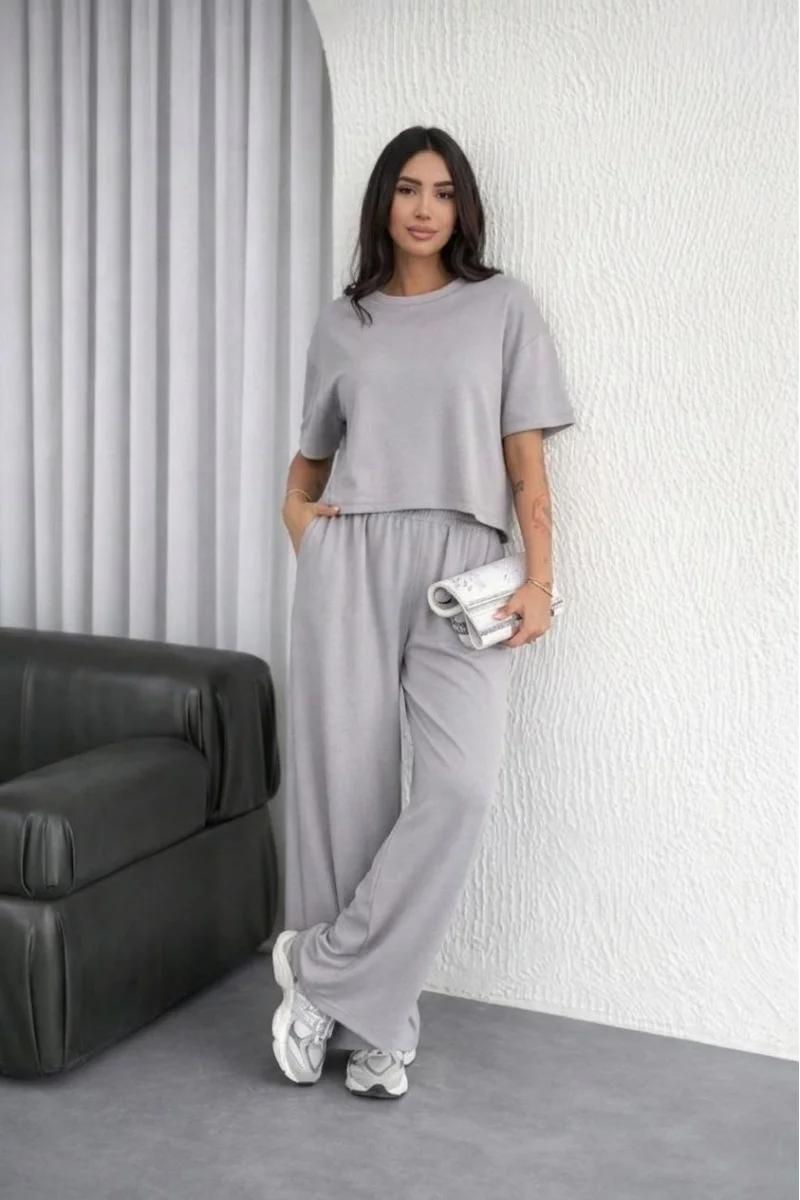 Kadın Osy Modal yumuşak dokulu Oversize İkili Takım Bol Paça Pantolonlu Takım - Gri