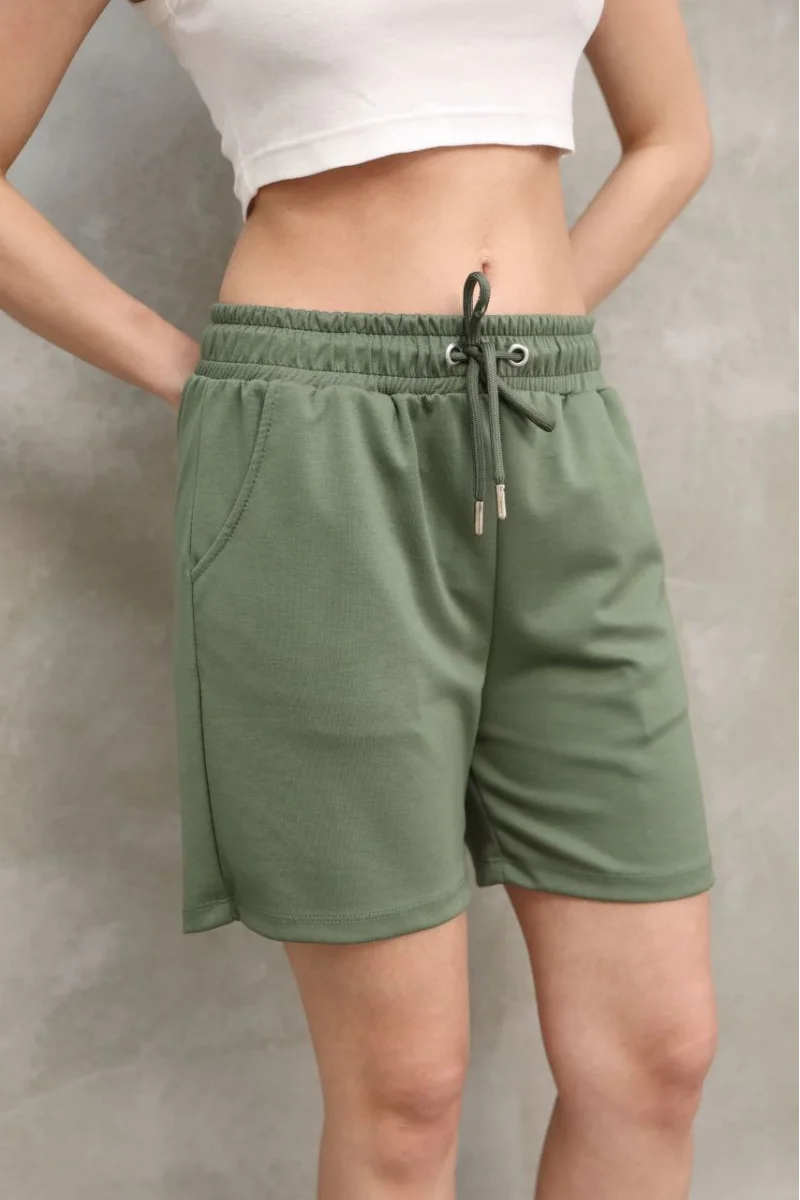 Osy Modal Yumuşak dokulu Kumaş Kadın Kısa Şort - Haki