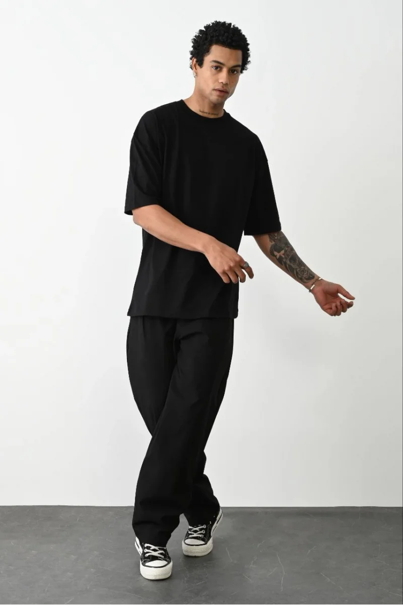 Erkek Düz Basic Bisiklet Yaka Kısa kol T-Shirt - Siyah